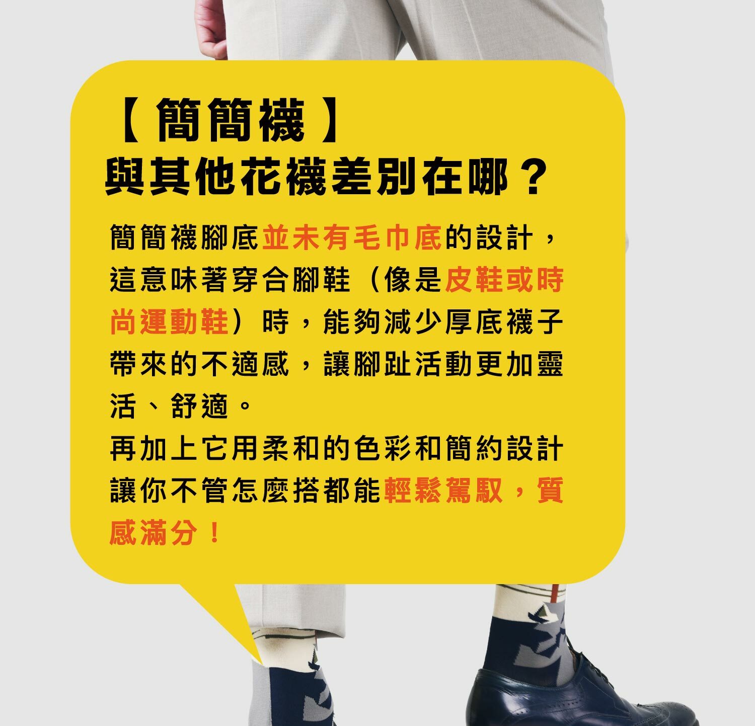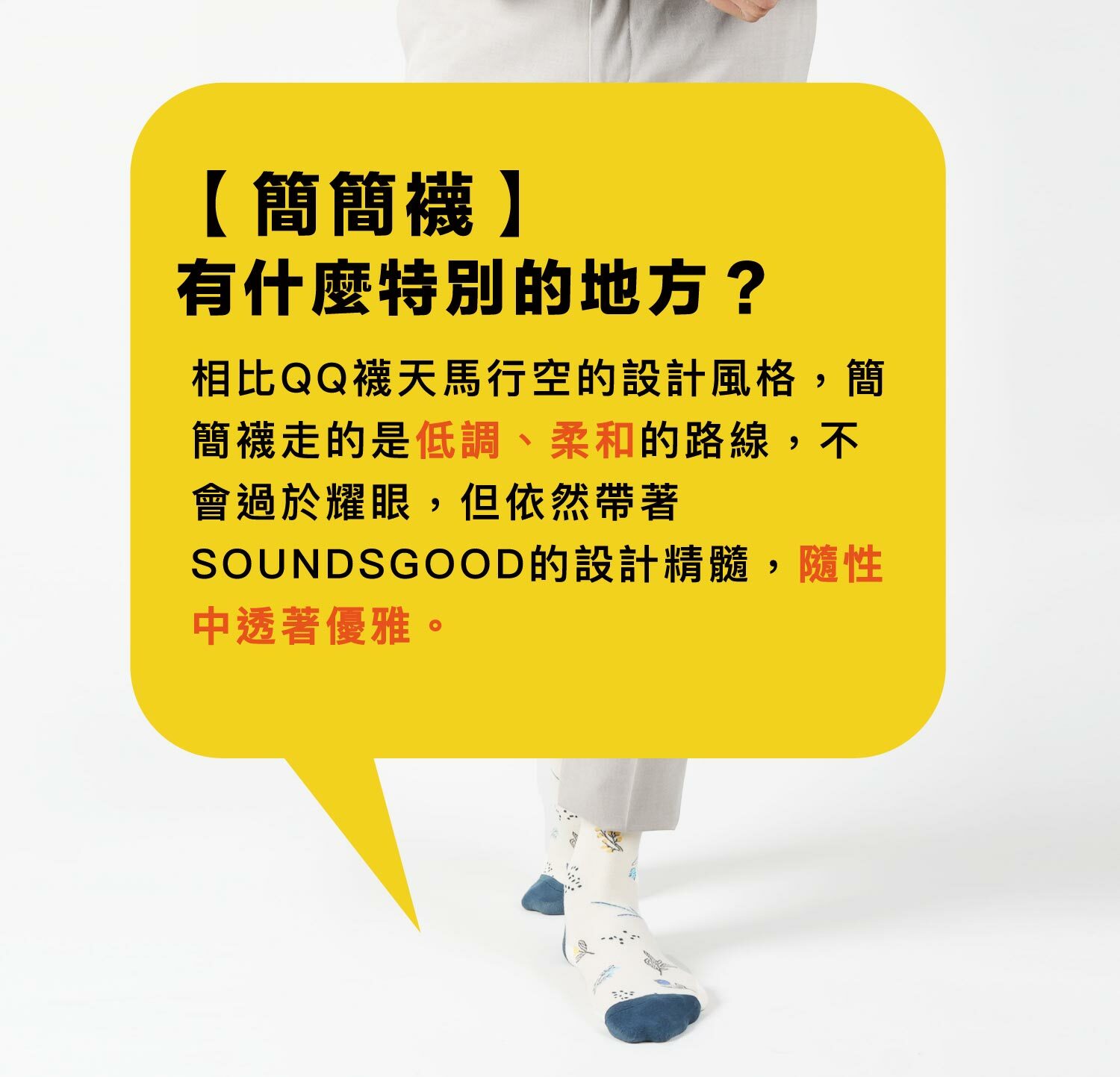「簡約的設計」讓「穿搭更簡單」,因又稱為【簡簡襪】